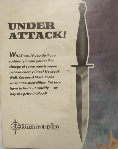 Commando For Action and Adventure, formerly known as Commando War Stories in Pictures, and colloquially known as Commando Comics, is a British comic book magazine that primarily draws its themes and backdrops from the various incidents of the First and Second World Wars. It was first published in July 1961 and is still in print today. It is noted for its distinctive 7 × 5½ inch, 68 page format that became a standard for these kinds of stories. Commando has remained more popular than many other British war comics, because of its character based stories and detailed black and white artwork, with only the covers in colour. It is considered by some to be one of the greatest war comics in history.